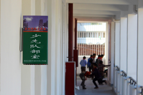 自今年5月以來,公司黨委副書記張?zhí)┥啻吻巴欧逯行男W(xué)進行實地走訪調(diào)研,與學(xué)校負責(zé)人多次交流溝通、商討少年宮建設(shè)方案的制定、了解關(guān)心少年宮建設(shè)進度及工作落實等問題,并于12月6日參加全市鄉(xiāng)村少年宮建設(shè)現(xiàn)場觀摩推進會,前往漳浦縣八一希望少年少年宮進行現(xiàn)場觀摩,學(xué)習(xí)少年宮建設(shè)經(jīng)驗。經(jīng)過公司及校方的共同努力,九峰中心小學(xué)鄉(xiāng)村少年宮建設(shè)卓有成效,學(xué)校活動場所煥然一新: