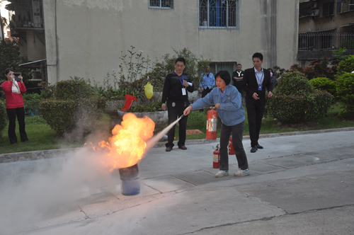 緊接著指揮人員讓參加演練的人員在大樓前集中,教官現(xiàn)場講解和演示用干粉滅火器滅火的要領(lǐng),并讓參演人員使用干粉滅火器現(xiàn)場滅火體驗。演練結(jié)束后,安全管理部人員就本次演練活動進行了分析和小結(jié)。