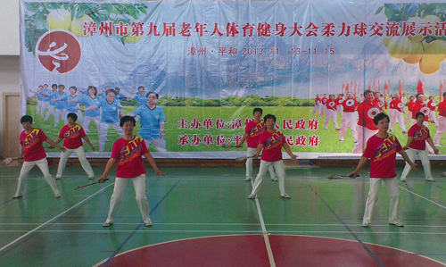 由漳州市政府主辦,漳州市體育局、漳州市老體協(xié)承辦的四年一屆的漳州市第九屆老年人體育健身大會于2013年10~11月圓滿舉行。本屆老健會本著“參與、交流、展示、發(fā)展”的宗旨,設(shè)置了門球、地擲球、氣排球、柔力球、乒乓球、臺球、中國象棋、圍棋、橋牌、太極拳(劍)、健身秧歌、健身腰鼓、釣魚等13個項目,充分體現(xiàn)了老年人參加競技體育的特點,共有30多個單位2500多名人員參加了大會。