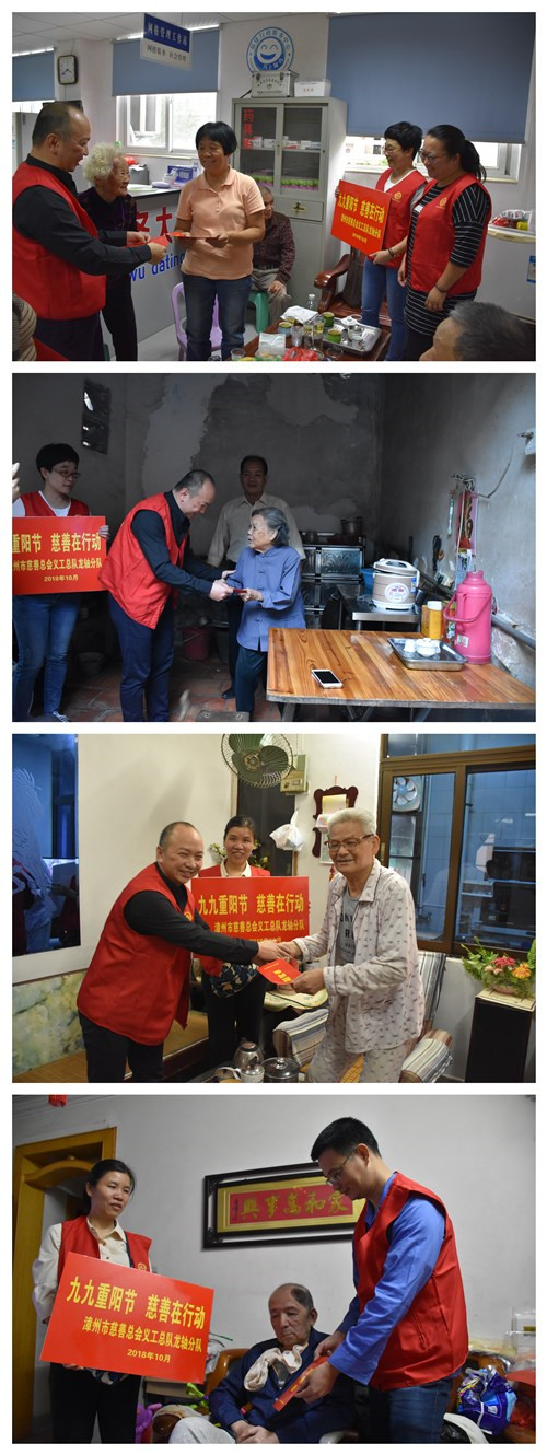 ????金秋十月,丹桂飄香,在重陽節即將來臨之際,漳州市慈善總會義工總隊組織開發“九九重陽節 慈善在行動”主題活動,公司義工分隊積極響應,于2018年10月15日前往10戶年邁體弱的孤寡老人、生活困難老人家庭噓寒問暖并送上慰問金。