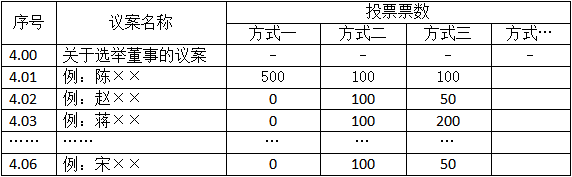 該投資者可以以500票為限,對(duì)議案4.00按自己的意愿表決。他(她)既可以把500票集中投給某一位候選人,也可以按照任意組合分散投給任意候選人。