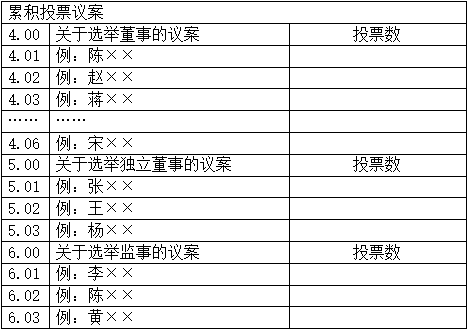 (六)采用累積投票制選舉董事、獨立董事和監(jiān)事的投票方式,詳見附件2