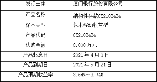 ?委托理財產(chǎn)品名稱:結(jié)構(gòu)性存款CK2102424。
