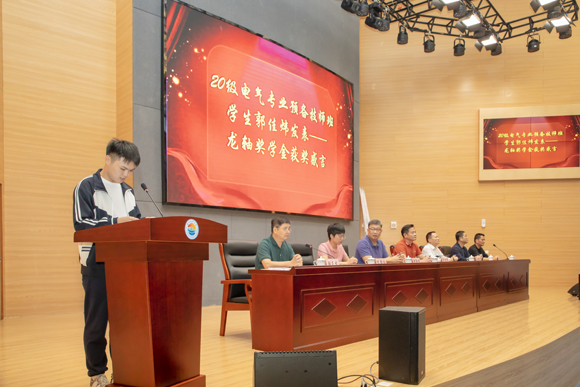 頒獎儀式上,獲獎學生代表對家庭、學校的教育培養及龍軸集團的大力支持表示感謝,表示一定珍惜這份榮譽,努力學習知識技能,帶動身邊同學奮發向上、學有所成。