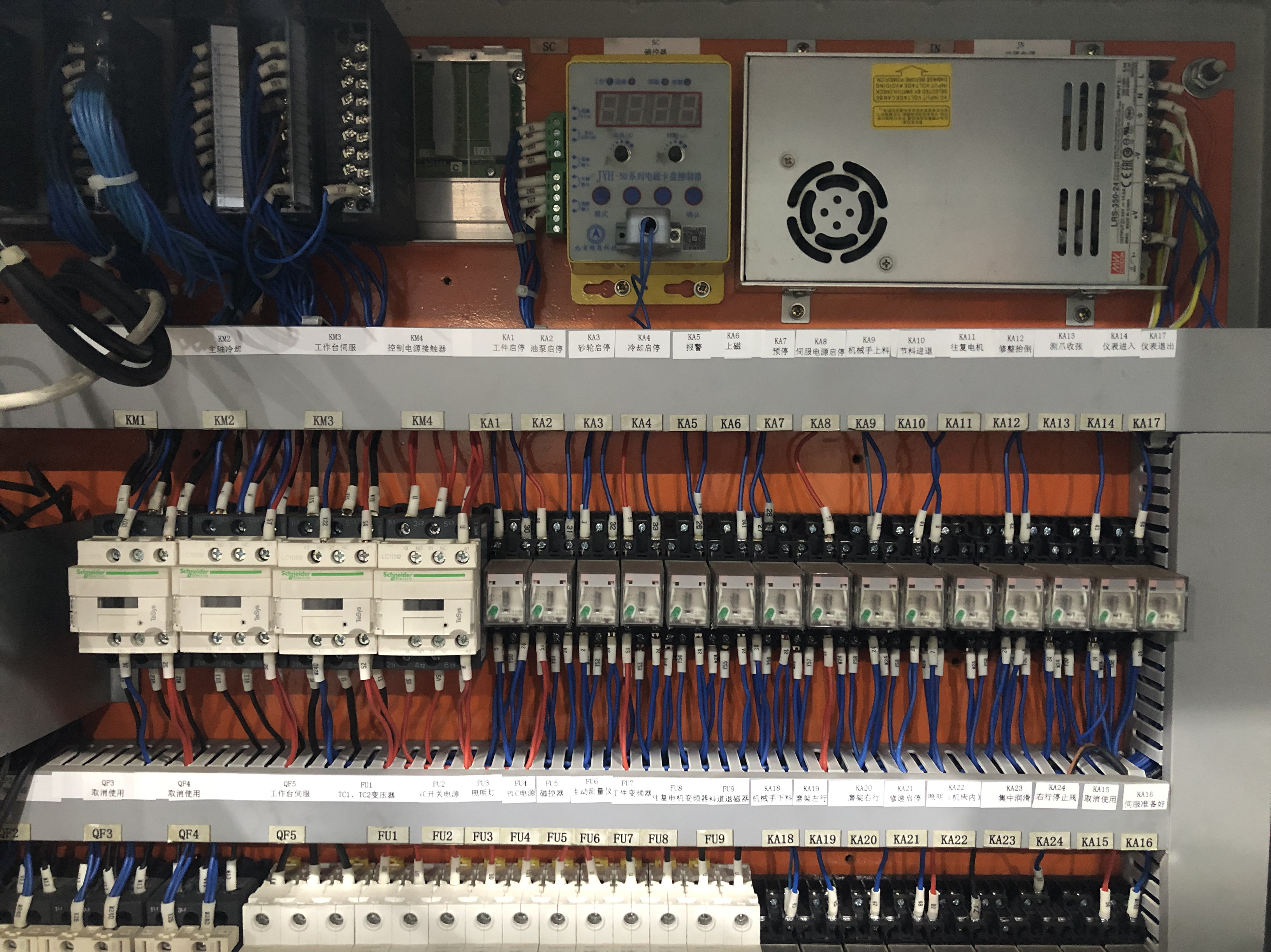 1、機(jī)床要配置容量合適的斷路器作為設(shè)備電源總開關(guān),并要求用戶電源進(jìn)線直接接到總開關(guān)的進(jìn)線端,并在合適位置配置電源指示燈。電源總開關(guān)接線應(yīng)遵循上進(jìn)下出原則,確保安全;總進(jìn)線端接線處應(yīng)留有足夠的線纜安裝空間。