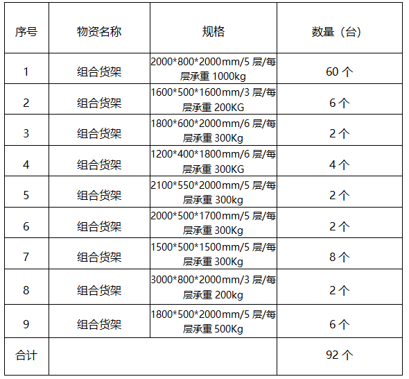 (三)項(xiàng)目內(nèi)容:福建龍溪軸承(集團(tuán))股份有限公司計(jì)劃采購組合貨架92個(gè)。