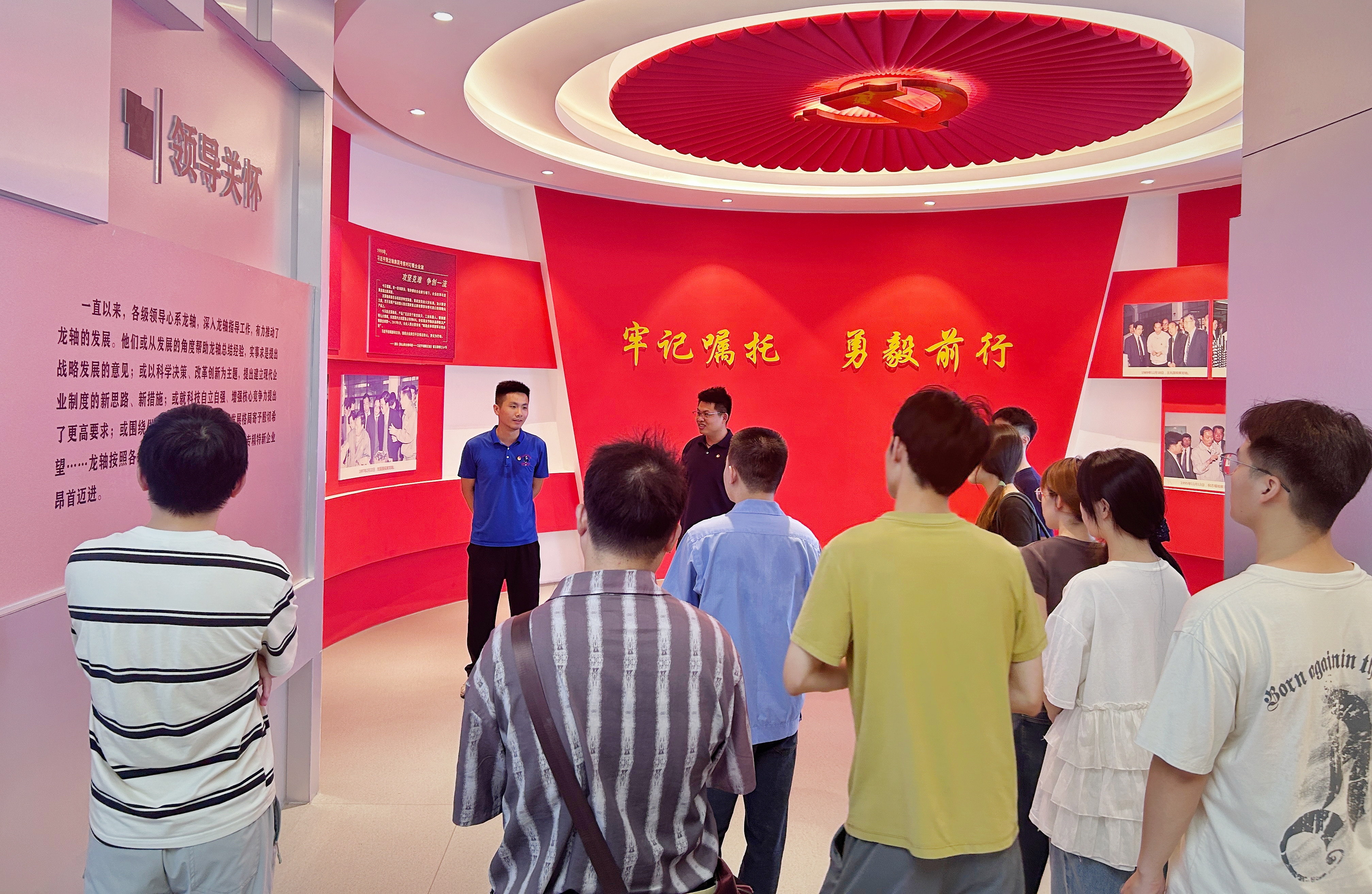 隨后,大家走進(jìn)龍軸展覽館,珍貴的照片、展品有序陳列,無聲卻有力地展現(xiàn)了公司67年來的發(fā)展歷程。團(tuán)員青年們認(rèn)真聆聽講解、不時(shí)交流感悟,在回溯企業(yè)“從無到有、從小到大、從弱到強(qiáng)”的艱辛歷程中,進(jìn)一步加深了對“求實(shí)奮進(jìn)”企業(yè)精神的理解。