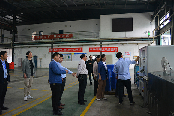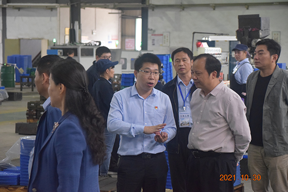 ▲龍軸集團永軸公司黨委書記、董事長吳岳彬陪同三明市總工會、永安市總工會、三明埔嶺汽車工業園區管委會領導參觀永軸公司廠區并詳細介紹數控磨加工及智能檢測連線設備情況