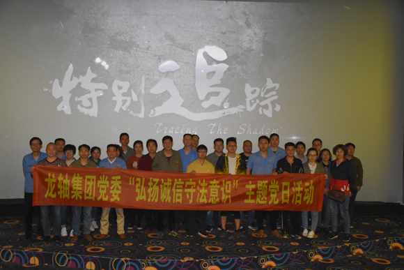 為認真貫徹落實習近平總書記在中央全面依法治國委員會第一次會議上提出“要建設社會主義法治文化”,加強法治宣傳教育的系列要求,2019年3月29日,龍軸集團黨委開展“弘揚誠信守法意識”主題黨日活動,組織60名黨員在大地電影城觀看影片《特別追蹤》。