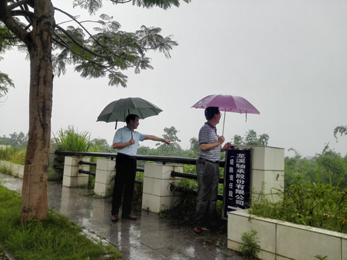 ????2017年6月3日上午,大雨如注。公司總經理陳晉輝、副總經理康安偉率領防汛抗洪搶險巡邏隊部分成員前往公司防洪防汛責任堤段——西溪康山土堤(起止樁號0+750~2+250)進行防汛安全巡查。