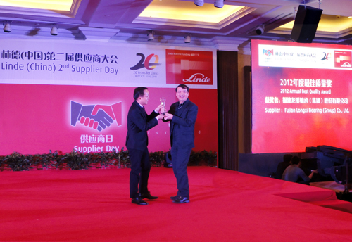 凱傲集團是全球物料搬運制造企業的領導者, 林德(中國)公司是國內物料制造企業的領先者。林德(中國)公司在頒獎詞中盛贊龍溪股份是行業的國際領先企業,與凱傲集團及林德緊密合作二十年,在新產品開發及產品優化設計等方面與林德研發部門積極有效配合,在生產制造管理上精益求精,以領先的工藝裝備及卓越的過程控制能力,保證產品質量的穩定性與可靠性,在歷年供應的產品中,質量QKZ指數達100%。