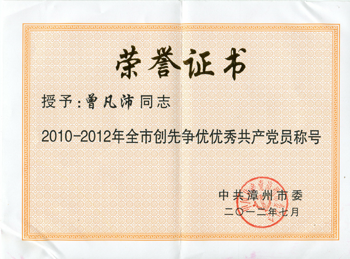 市創先爭優優秀共產黨員(曾凡沛)