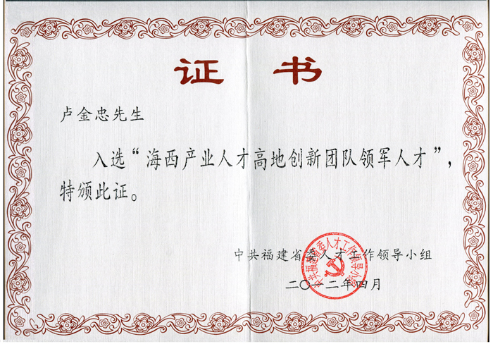 海西產業人才高地 創新團隊領軍人才(盧金忠)證