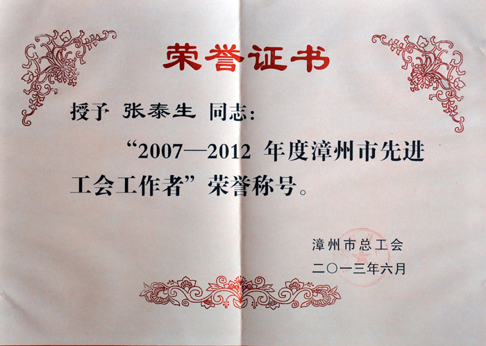 漳州市先進工會工作者(張泰生)