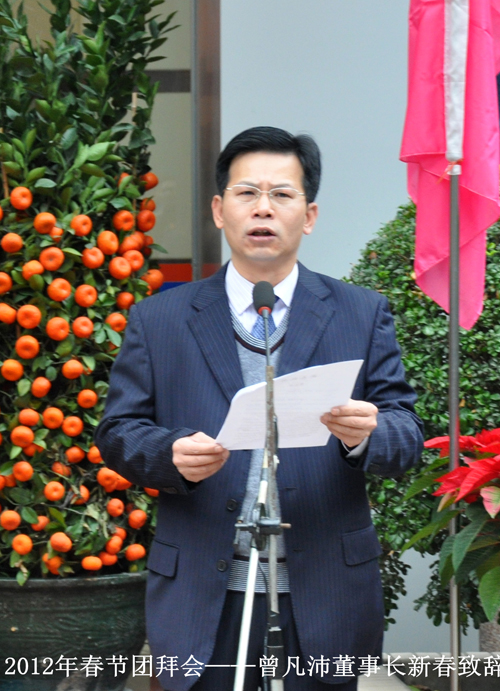 2012年1月21日(農(nóng)歷壬辰年十二月二十八)上午,公司在總部辦公樓前舉辦“2012年春節(jié)團(tuán)拜會(huì)”,團(tuán)拜會(huì)在公司黨委副書記張?zhí)┥闹鞒窒潞?jiǎn)單而莊重的進(jìn)行著,公司高管及2000多名在職、離退休員工參加了團(tuán)拜會(huì)。會(huì)上,公司黨委書記、董事長(zhǎng)曾凡沛代表公司黨委、總部發(fā)表了熱情洋溢的新春致辭,向全體員工表示節(jié)日問(wèn)候和崇高敬意!員工代表何國(guó)輝也在會(huì)上做了誠(chéng)摯質(zhì)樸的發(fā)言。